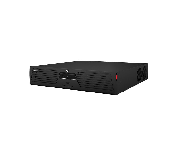 16 kanálový síťový digitální videorekordér, komprese H.265+/H.265/H.264+/H.264, vstupní/odchozí šířka pásma 320Mbps / 400Mbps, až 32Mpx rozlišení záznamu kamer, 2x HDMI, 2x VGA, 1x BNC výstup, 4x USB, RS-485, RS-232, 2x Gigabit NIC, 8x SATA, 1x eSATA, každý HDD až 14TB, RAID 0/1/5/6/10, podpora POS, ANR, obousměrné audio, výklopný přední panel pro snadnou instalaci HDD, poplachové I/O: 16/9, výstup 12VDC 1A, 1x alarmový výstup 12VDC 1A, napájení: 100~240V AC 50W (bez HDD), 19" 2U