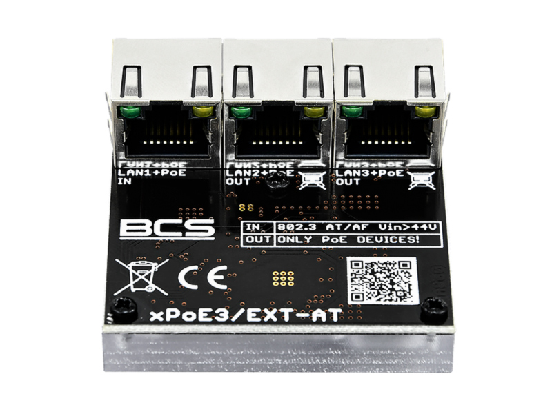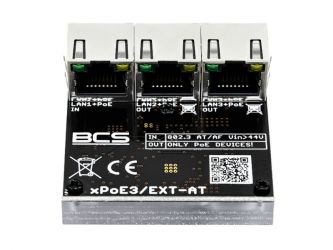 BCS-xPoE3/EXT-AT je síťový přepínač PoE, který funguje jako lan repeater s PoE napájením. Nejčastěji se používá pro prodloužení sítí delších než 100 m. Kromě toho je ideální jako "krabička poslední pomoci" v situacích, kdy potřebujeme další kameru/y na jednom UTP kabelu. Na jeden kabel umožní připojit až 3 IP kamery s PoE napájením. Zařízení je velmi malé, což umožňuje snadnou instalaci v malých prostorách, například v montážních krabičkách pod kamerou.