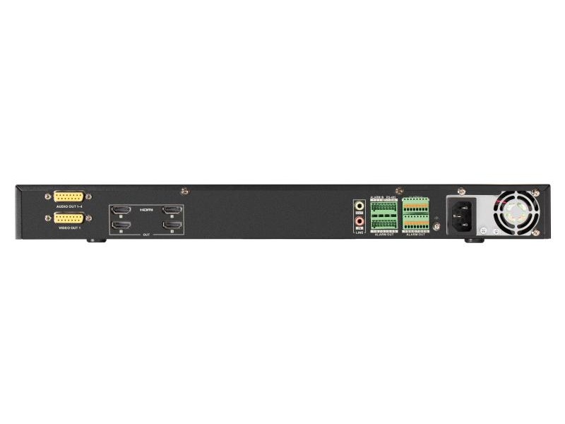 | Dekodér pro dekódování až 64 kanálů (podle rozlišení), 4x HDMI (4K), 1x BNC, 2x HDMI vstup, komprese H.265+/H.265/H.264+/H.264/MJPEG, dekódování až 32Mpx, 1x RJ-45 + 1x SFP 10/100/1000Mbps, alarmové vstupy/výstupy 8/8, audio výstup, RS-485, RS-232, 2x USB, vhodné pro video stěny, napájení 230V AC/50W, rozměry 440x321x45mm |