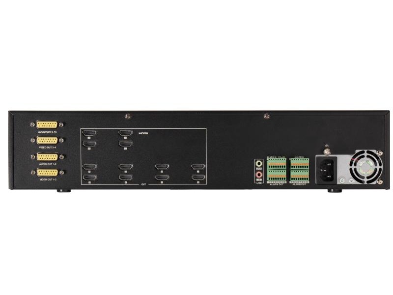 | Dekodér pro dekódování až 192 kanálů (podle rozlišení), 12x HDMI (4K), 3x BNC, 2x HDMI vstup, komprese H.265+/H.265/H.264+/H.264/MJPEG, dekódování až 32Mpx, 2x RJ-45 + 2x SFP 10/100/1000Mbps, alarmové vstupy/výstupy 8/8, audio výstup, RS-485, RS-232, 2x USB, vhodné pro video stěny, napájení 230V AC/120W, rozměry 440x321x88mm |