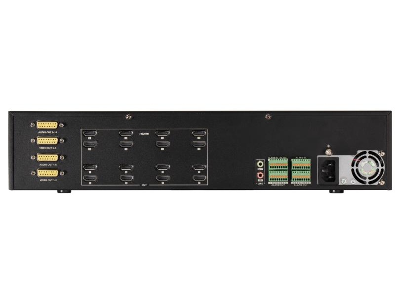 | Dekodér pro dekódování až 256 kanálů (podle rozlišení), 16x HDMI (4K), 4x BNC, 2x HDMI vstup, komprese H.265+/H.265/H.264+/H.264/MJPEG, dekódování až 32Mpx, 2x RJ-45 + 2x SFP 10/100/1000Mbps, alarmové vstupy/výstupy 8/8, audio výstup, RS-485, RS-232, 2x USB, vhodné pro video stěny, napájení 230V AC/150W, rozměry 440x321x88mm |