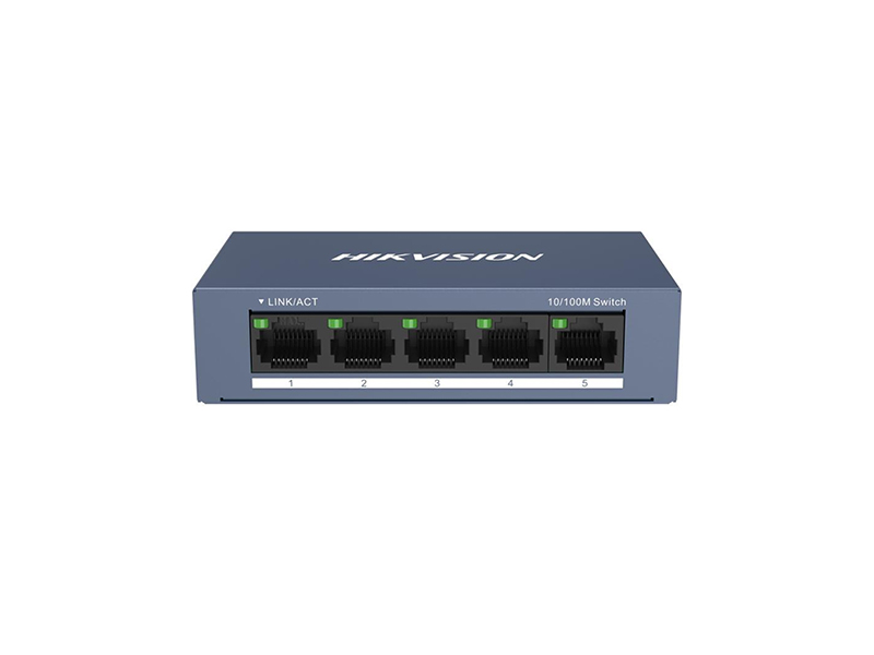 = KOD:314642 PKOD:23364 KODVYROBCE:301802492 =5 portový switch - 5x RJ-45 10/100Mbps, bez managementu, kovové šasi, bez ventilátoru, stavové LED, hmotnost 0.15kg, rozměry 103 x 26 x 61mm, provozní teploty 0°C až +40°C, napájení 5VDC 5W, zdroj součástí