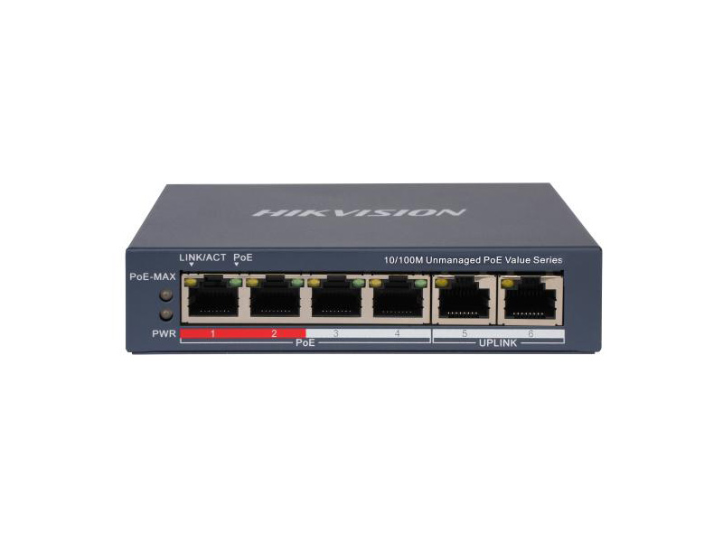 = KOD:315699 PKOD:26379 KODVYROBCE:301802941 =6 portový switch - 4x PoE 30W 10/100Mbps + 2x uplink RJ-45 10/100Mbps, PoE celkem max. 45W, bez managementu, prodloužený režim (porty 1 - 4), kovové šasi, bez ventilátoru, stavové LED, hmotnost 0.2kg, rozměry 121 x 28 x 83mm, provozní teploty 0°C až +40°C, napájení 54VDC - 5W, zdroj součástí