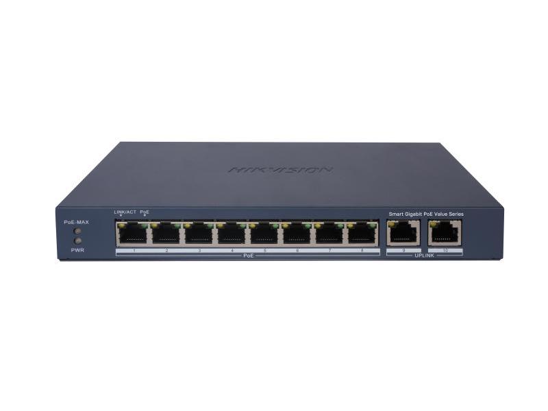 = KOD:315661 PKOD:26286 KODVYROBCE:301803447 =10 portový switch - 8x PoE 30W 1Gbps + 2x uplink RJ-45 1Gbps, PoE celkem max. 60W, základní management (web), prodloužený režim (porty 1 - 8), kovové šasi, bez ventilátoru, stavové LED, hmotnost 0.54kg, rozměry 218 x 28 x 109mm, provozní teploty 0°C až +40°C, napájení 54VDC 5W, zdroj součástí
