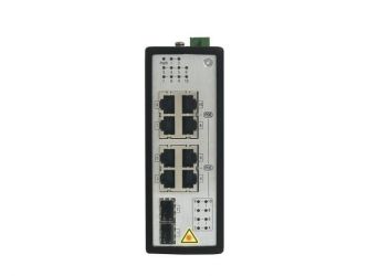 = KOD:315682 PKOD:23105 KODVYROBCE:301802455 =10 portový průmyslový switch - 8x PoE 30W 1Gbps + 2x uplink SFP slot 1Gbps, PoE celkem max. 240W, bez managementu, kovové šasi, bez ventilátoru, stavové LED, rozměry 140 x 110 x 52mm, instalace na DIN lištu, provozní teploty -40°C až +85°C, napájení 48-57VDC 10W (zdvojené napájecí svorky pro záložní napájení, bez zdroje)