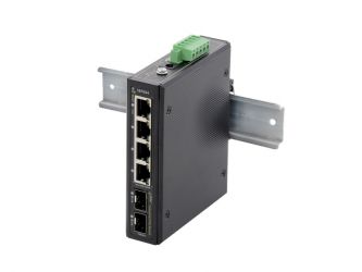 6 portový switch – 4x RJ-45 2.5Gbps PoE+ IEEE 802.3af/at, 2x SFP 10Gbps, PoE celkem max. 120W, bez managementu, automatická detekce PoE zařízení, kovové šasi, stavové LED, rozměry 30 x 128 x 112mm, napájení 12–57VDC, zdroj není součástí.
