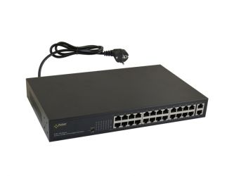 24 portový switch – 24x PoE 30W 100Mbps + 2x uplink 1Gbps, PoE celkem max. 160W, bez managementu, prodloužený režim (porty 17–24), kovové šasi, stavové LED, rozměry 330 x 44 x 204mm RACK 1U, napájení 100–240VAC, zdroj součástí