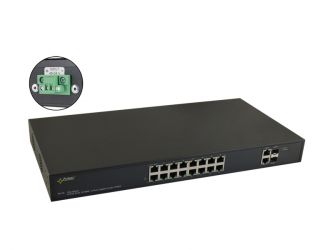 16 portový switch – 16x PoE 30W 100Mbps + 2x uplink combo 1Gbps (RJ-45 nebo SFP slot), PoE celkem max. 240W, bez managementu, kovové šasi, stavové LED, rozměry 442 x 44 x 224mm RACK 1U, provozní teploty -10°C až +40°C, napájení 48–54VDC, zdroj není součástí