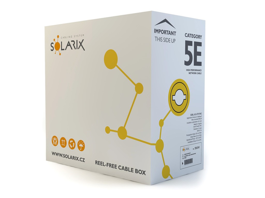 = KOD:107339 PKOD:10567 =Kabel licna Solarix CAT5e UTP PVC šedý 305m/box