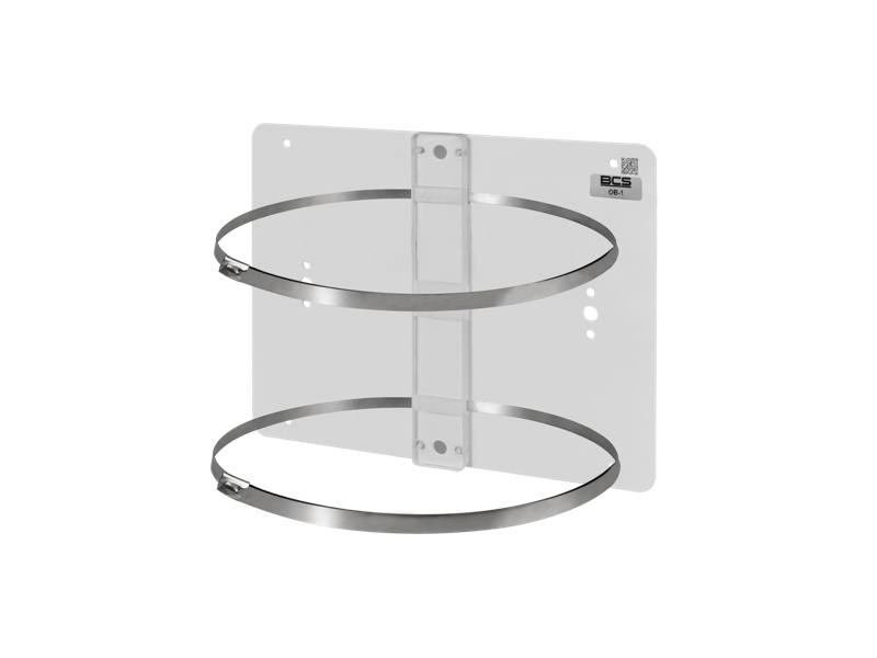 sloupový adaptér – pro kryty BCS-L2 a BCS-L3, kovová konstrukce, 2× nastavitelné ocelové svorky 7,9 × 1000 mm, montážní deska 240 × 190 × 1,5 mm (bílý lak), hmotnost 0,28 kg, bez krytu.