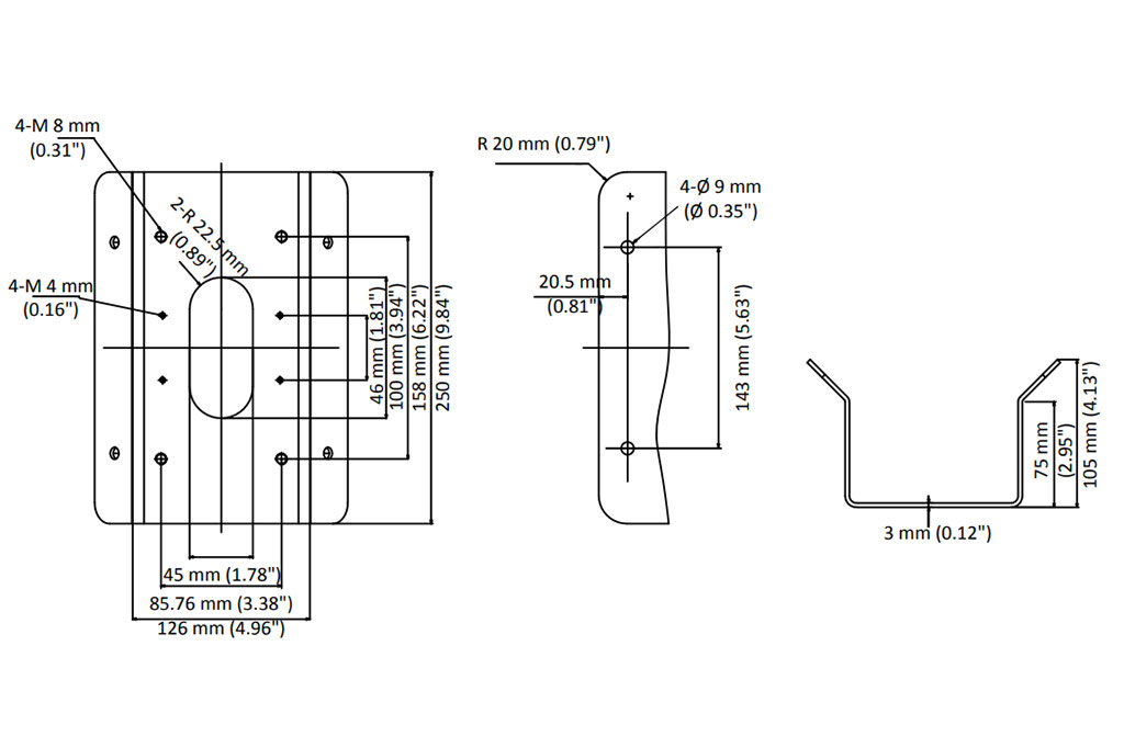Držák na vnější roh pro kamery Hikvision, materiál: ocel, barva: bílá, rozměry 250 x 126 x 105mm