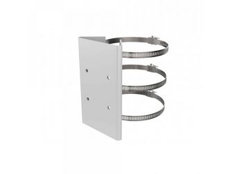 Držák na sloup pro kamery Hikvision, materiál: ocel, barva: bílá, pro průměr sloupu: 67 - 127mm, 3x ocelová stahovací páska, rozměry 194 x 117 x 46mm