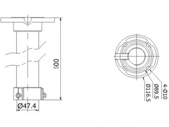Držák na strop pro PTZ kamery Hikvision, materiál: hliník, barva: bílá, průměr stropní základny 116mm, délka 500mm
