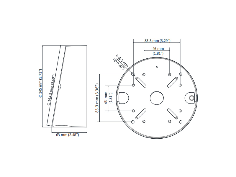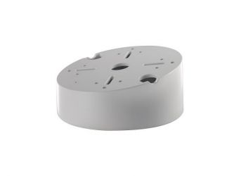Zadní kryt pro skrytou montáž kabelů pro kamery Hikvision, montáž na šikmý strop, materiál: hliník, barva: bílá, 1x otvor zboku + 1x v základně, průměr 145mm, výška 63mm