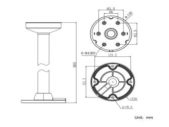 Držák na strop pro DOME kamery Hikvision, materiál: hliník, barva: bílá, průměr stropní základny 150mm, průměr základny pro kameru 140mm, délka 565mm