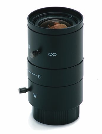 1/3" varifocální objektiv s manuální clonou, ohniskovou vzdáleností 3.5~8mm, horizontálním úhlem záběru v rozsahu 69° ~ 33°