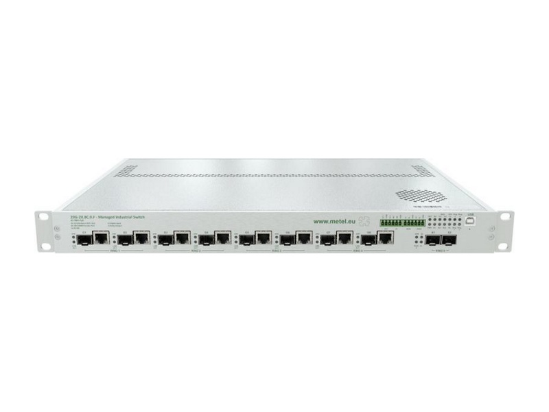 = KOD:309562 PKOD:22984 =20G-2X.8C.0.F-UNIT/1U, Průmyslový managed switch 19"/1U s podporou: 2x SFP+ sloty 10 GBASE-R, 8x COMBO porty (SFP/RJ45), Sériové sběrnice 2x RS485 / RS422 / Modbus, 2x digitální/poplachový vstup, 1x programovatelný relé výstup, 2 nezávislé vstupy napájení, Redundantní topologie LAN-RING, RSTP, Event management s podporou: HTTP/ONVIF klient, E-mail, IP Watchdogy, ETH eventy, TCP, Modbus, DIO, vyvážené smyčky... VLAN, QoS, SNMP, SMTP, SNTP, IGMPv1/2, RSTP, LLDP, 802.1X, Přepěťové ochrany až 30A (8/20µs), Provozní teplota od 0°C do +70°C, Provozní teplota součástek od 0°C do +85°C, instalace do 19" stojanu, 230VAC