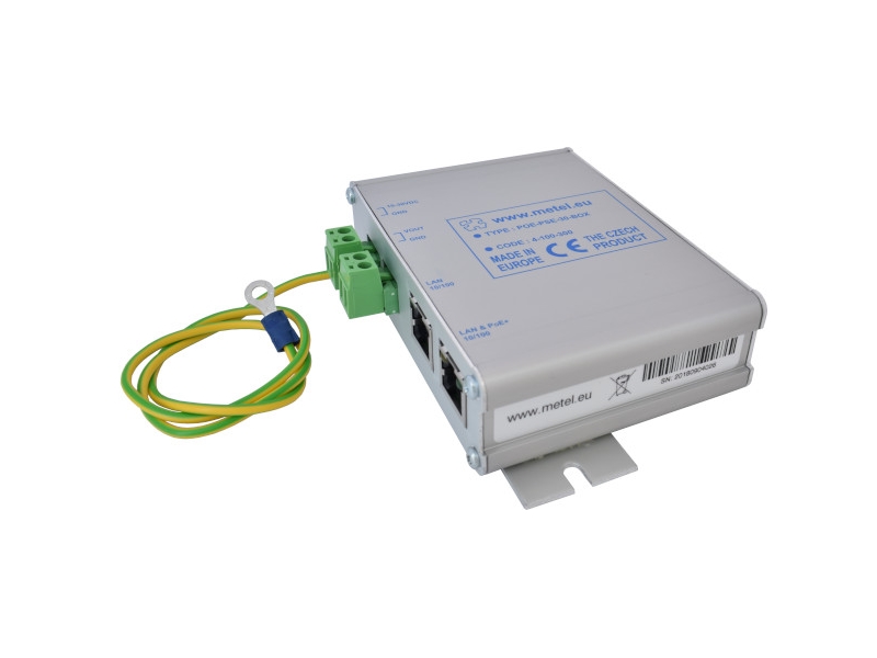 = KOD:309486 PKOD:9326 =POE-PSE-30-BOX, Jednoportový injektor PoE dle IEEE 802.3af/at, maximální dodávaný výkon 30W (4,5 - 7,8), rozsah pracovních teplot od -40°C do +70°C, ochrana PoE linky transil + bleskojistka, instalace na rovný podklad nebo DIN35, 12VDC/24VDC