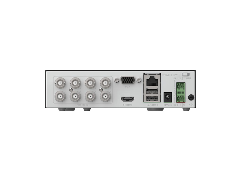 8 kanálové TVI/CVBS/AHD/CVI + podpora IP kanálu 2x 6Mpx, eSSD disk, AcuSense záznamová rychlost: 5Mpx lite 12fps, 4Mpx lite 15fps, 1080p lite 25fps, komprese H.265Pro/H.265 (HD analog) a H.265+/H.265 (IP), HDMI/VGA 1080p, AcuSense detekce pohybu 8 kanálů, AcuSense ochrana perimetru 4 kanály, Hik-connect, 1x eSSD 1024GB součástí (dostupné 960GB), LAN: 10M/100M auto adaptabilní, 2x USB, napájení 12V DC/8.2W, rozměry 170x121x46mm, bez poplachového I/O