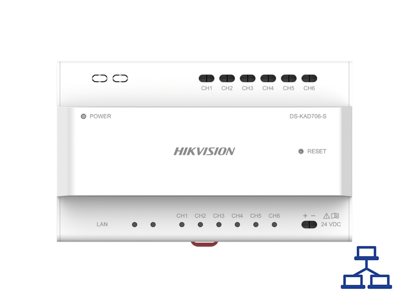 Distributor pro VDT, 1xRJ45, 6x 2drát rozhraní, reset tlačítko, materiál: plast, napájení 24VDC, vlastní spotřeba 4W (kompatibilní pouze s dalšími distributory Y)
