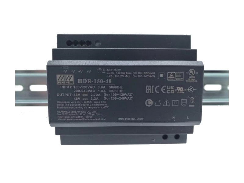 Napájecí zdroj, 48VDC/3.2A - 150W, ochrana proti zkratu/přetížení/přepětí, montáž na DIN lištu