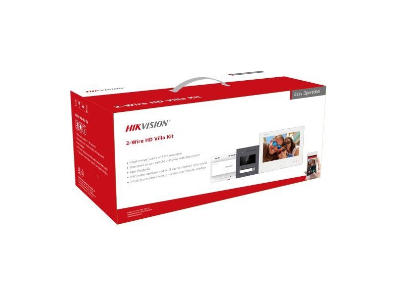 Sada videotelefonu po dvou drátech. Obsahuje: venkovní jednotku DS-KD7003EY-IME2/A + povrchový šedý rámeček DS-ACW1 + monitor DS-KH7300EY-WTE2/White + distributor DS-KAD7040EY + zdroj DS-KAW150-4N