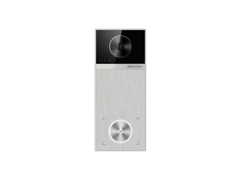 4Mpx Villa 1 tlačítková IP dveřní stanice, plastové + hliníkové šasi, Wifi, Bluetooth, rozlišení kamery: 4Mpx 25fps, úhel záběru 150° x 75°, 120dB WDR, klasifikace zvuku, detekce pohybu, komprese H.264/H.265/MJPEG, Hik-Connect, ONVIF, RS-485, 4x popl. vstup, 2x výstup pro zámek (NO/NC relé), 1x RJ-45 10M/100Mbps, slot na micro SDXC kartu až 128GB, IP65, napájení: 12 VDC/PoE - 10W, Mifare card modul, IR přísvit 3m, kapacita 2000 osob/10000 karet, rozměry: 164 x 69 x 24.7mm, výstup 12VDC 1A, černá + stříbrná barva, povrchová montáž