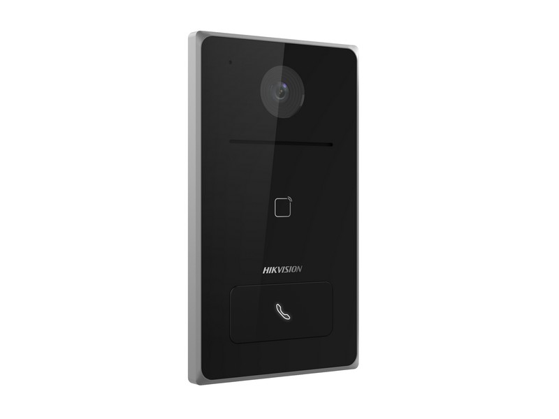 2 Mpx Villa 1 tlačítková IP dveřní stanice, Hliníkové šasi, Rozlišení kamery: FullHD, 25fps, úhel záběru 129° x 75°, 120dB WDR, 10M/100M Auto-adaptabilní Ethernet, Wi-Fi 802.11b/g/n, možnost přímého volání na Hik-Connect, RS-485, 4x popl. vstup, 1x výstup pro zámek (NO/NC relé), IP65, napájení: 12 VDC/PoE - 10W, Mifare card modul, IR přísvit 2.5m, kapacita 2000 osob/10000 karet, rozměry: 182 x 106 x 30mm