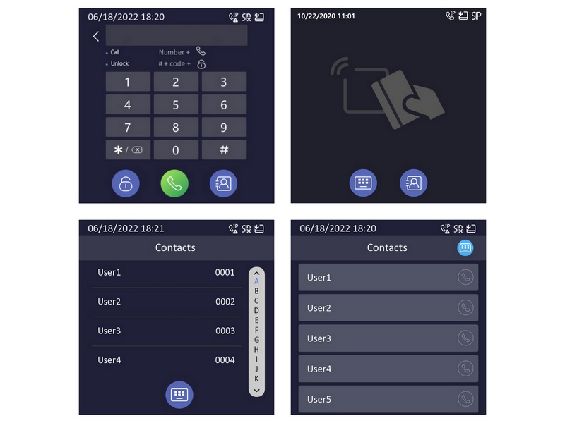 Video Intercom 2. generace, 4" IPS dotykový displej, rozlišení 480x480px, čtečka karet EM (125kHz), vyhledání v seznamu kontaktů, zobrazení zadávaných číslic klávesnicí, možnost zobrazení loga/obrázků, 4W, IP65, IK08, 2x RS-485, barva černá