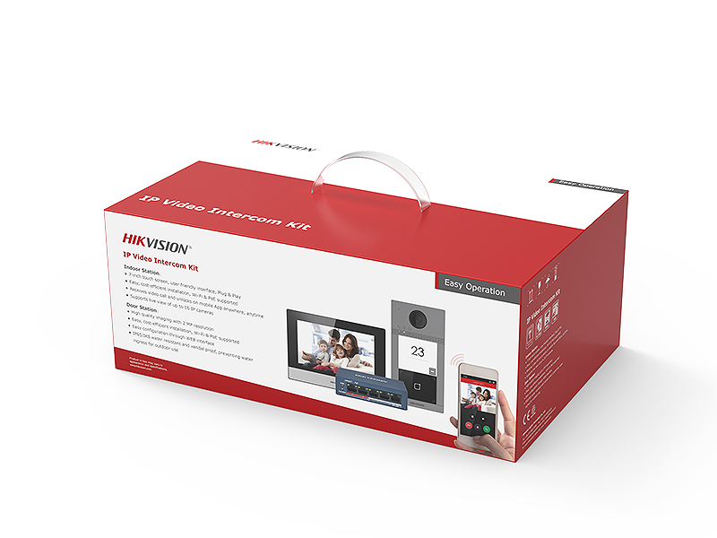 Sada IP videotelefonu: 1x Dveřní jednotka DS-KV8113-WME1(C), 1x vnitřní jednotku DS-KH6320-WTE1, 1x switch DS-3E0105P-E/M(B), 1x 16GB MicroSD