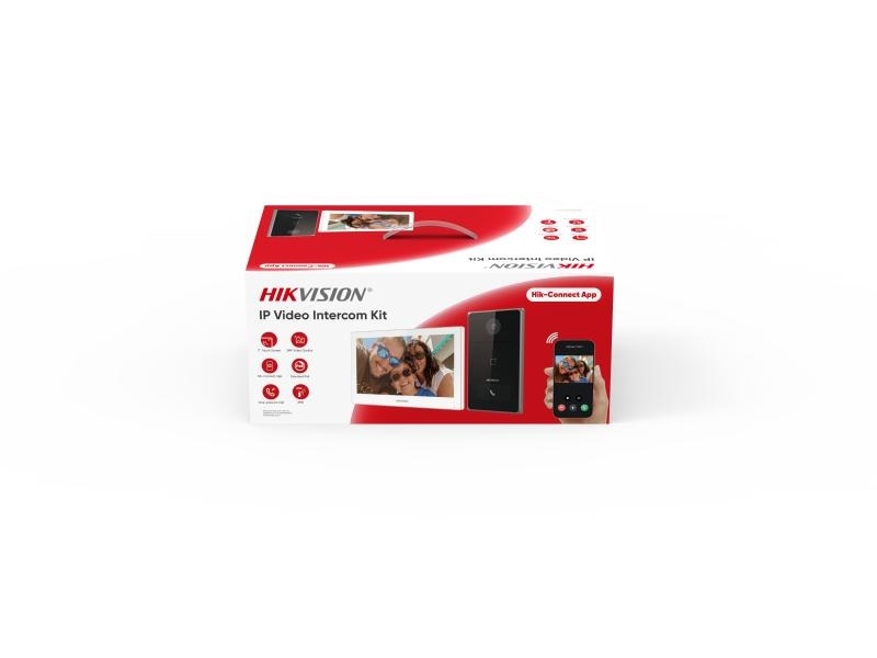 Sada IP videotelefonu: 1x dveřní jednotka DS-KV6133-WME1, 1x vnitřní jednotka DS-KH6350-WTE1/White, 2x 12VDC adapter, 1x 32GB MicroSD