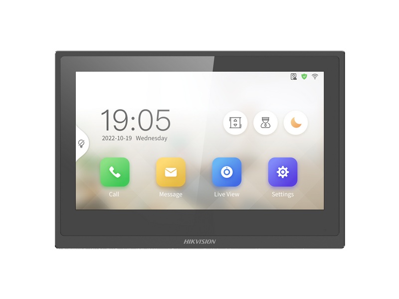 7" barevný TFT-LCD monitor pro videotelefony určený pro instalaci na stěnu, dotykové ovládání, rozlišení monitoru 1024x600px, vestavěný mikrofon a reproduktor, podpora TF karty max. 128GB, rozhraní RS-485, LAN port 10/100 Base, 8/2 alarm vstup/výstup, rozměry 180x123x21mm, provedení plast, PoE napájení po LAN síti nebo z napájecího adaptéru 12VDC - 3W, zdroj není součástí, černé provedení, kovový rámeček