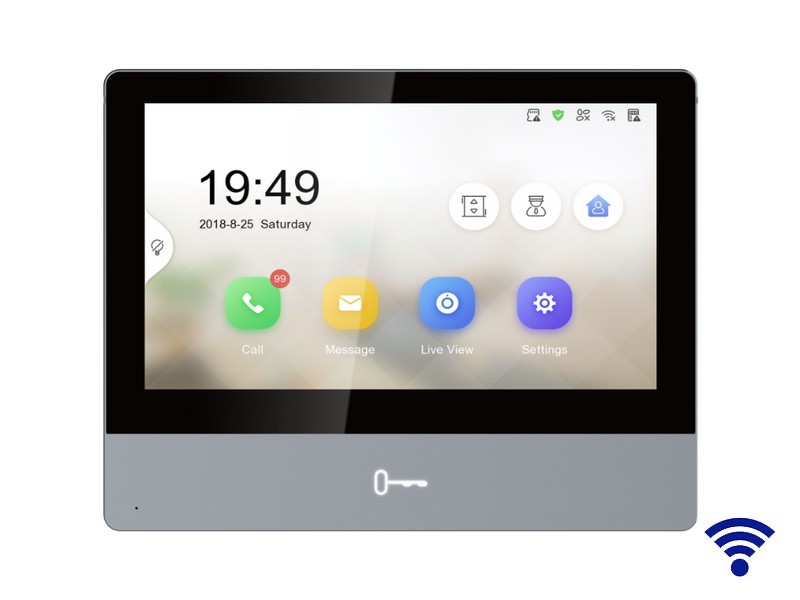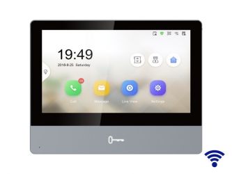 7" barevný TFT-LCD monitor pro videotelefony určený pro instalaci na stěnu, dotykové ovládání, WiFi, tlačítko pro odemknutí, rozlišení monitoru 1024 x 600 px, vestavěný mikrofon a reproduktor, Hik-Connect, podpora TF karty max. 128GB, rozhraní RS-485, LAN port 10/100 Base, 8/2 alarm vstup/výstup, rozměry 180 x 140 x 22.4 mm, provedení metal, PoE napájení po LAN síti nebo z napájecího adaptéru 12VDC - 7W, zdroj není součástí