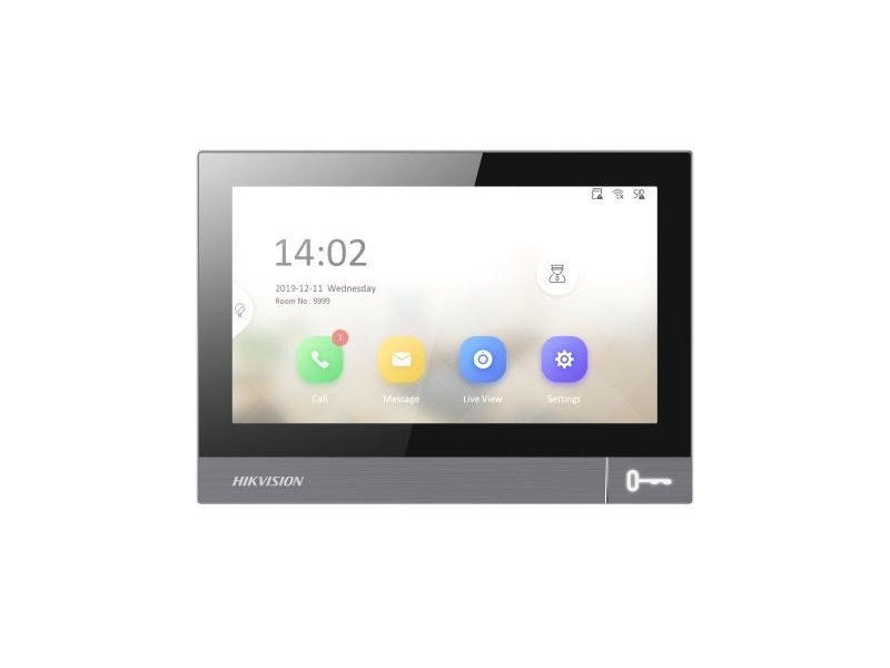 7" barevný TFT-LCD monitor pro videotelefony určený pro zápustnou instalaci na stěnu, dotykové ovládání, tlačítko pro odemknutí, WiFi, rozlišení monitoru 1024 x 600px, vestavěný mikrofon a reproduktor, Hik-Connect, podpora TF karty max. 128GB, rozhraní RS-485, LAN port 10/100 Base, 8/4 alarm vstup/výstup, výstup 12VDC 0.5A, rozměry 180 x 128 x 22mm, provedení hliník, napájení PoE/12VDC - 12W, zdroj není součástí