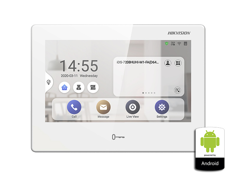 = KOD:312481 PKOD:19762 KODVYROBCE:305301983 =7" barevný TFT-LCD monitor pro videotelefony určený pro instalaci na stěnu, dotykové ovládání, WiFi, bílé provedení, OS Android 5.1.1, tlačítko pro odemknutí, rozlišení monitoru 1024 x 600 px, vestavěný mikrofon a reproduktor, Hik-Connect, interní paměť 1GB (+8GB flash), rozhraní RS-485, LAN port 10/100 Base, 8/2 alarm vstup/výstup, rozměry 187 x 137 x 25.7 mm, provedení plast, PoE napájení po LAN síti nebo z napájecího adaptéru 12VDC - 8W, zdroj není součástí