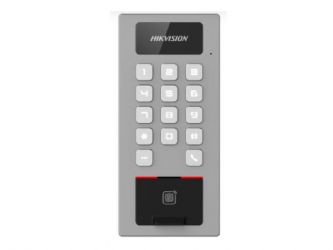 = KOD:110267 KODVYROBCE:302918808 =Přístupový terminál, vestavěná čtečka Mifare, DESfire; integrate the access control and video intercoms IP65?IK09?increased stability with zinc alloy materials Storage with 100,000 cards, 10,000 fingerprints and 300,000 events; support mobile APP hikconnect Supports two-way audio intercom,capacitive Fingerprint Module; Uplink Communication: TCP/IP, WIFI; Downlink Communication: RS-485;