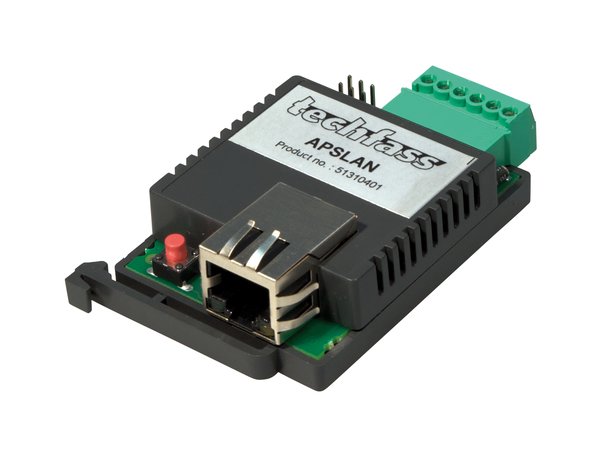 Komunikační převodník APSLAN je určen pro komunikaci se systémem APS mini Plus přes rozhraní TCP/IP nebo pro zajištění jednostranné komunikace z WIEGAND výstupu čteček přes rozhraní TCP/IP. Dodává se v provedení vhodném k montáži na DIN lištu.