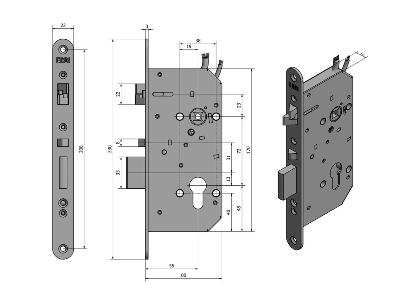 Vchodový zadlabací elektromechanický reverzní zámek bez akustické signalizace pro všechny interiérové i venkovní dveře s uzamčením bez klíčů. Paniková funkce kliky s odemknutím pouze stiskem kliky, mechanicky nastavitelná orientace kliky, na levou nebo pravou stranu. S funkcí samozamykání, nejužší 15 mm zámek na trhu. Vývod - 2 PIN konektor přímo na desce - nutné dokoupit protikus (2304-008) KAB 0,1/2K.