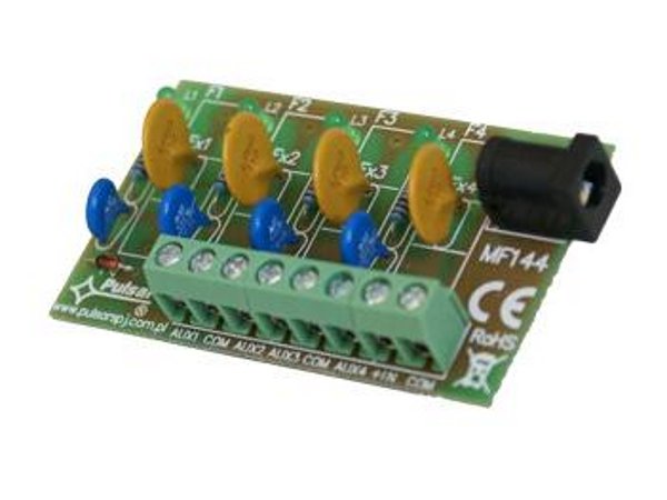 Pojistkový blok se používá pro rozvod energie v nízkonapěťových poplašných systémech. Modul má 2 napájecí jednotky: svorkovnici IN a socket DC 5,5/2,1. Pracovní napětí pojistkového modulu je 10 V÷ 30 V DC. Modul má 4 nezávislé výstupy (AUX1 ÷ AUX4). Modul má ochranu výstupů pře přetížením a zkratem pomocí polymerových pojistek PTC. Chyba pojistky nebo aktivace pojistky je signalizována vypnutím příslušné diody u výstupu (např. LED L1 u AUX1). kromě toho je každý výstup chráněn varistorem pro kontrolu zatížení a přepětí ze sítě.