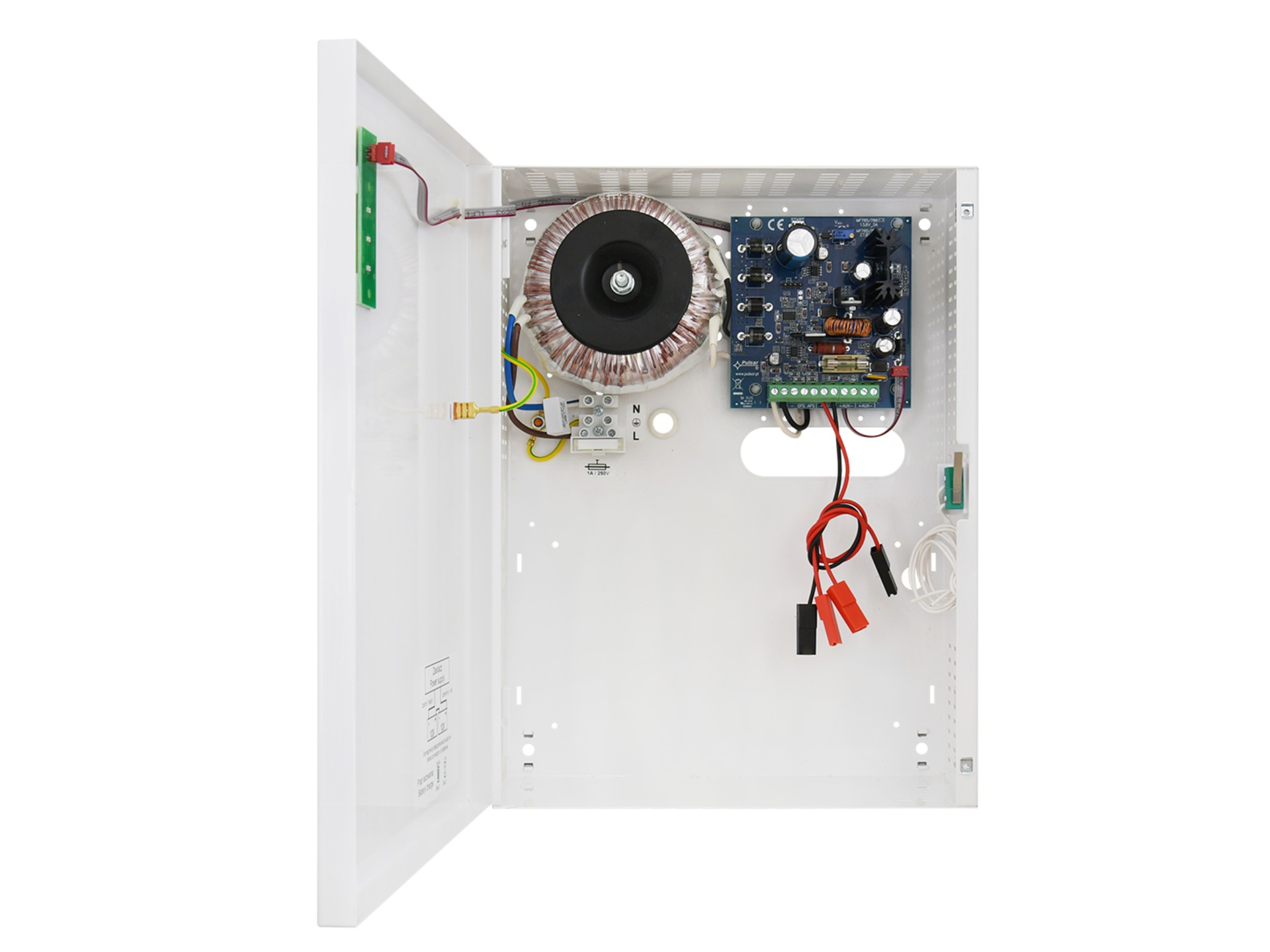 = KOD:109471 PKOD:19980 =Zálohovaný napájecí zdroj 27,6V/2A v kovovém krytu s prostorem pro 2x7Ah akumulátor, shoda s EN50131-6 stupeň 1, 2. Ochrany: SCP, OLP, OVP, UVP (vybití aku.), tavná pojistka, TAMPER. Technické OC výstupy pro sign. poruchy AC a AKU, záruka 5 let. Je určen pro stálé (zálohované) napájení zařízení, vyžadujících stabilizované napětí 24V DC (např. infrazávory, detektory, signalizace, kamery, elektromagnetické zámky).