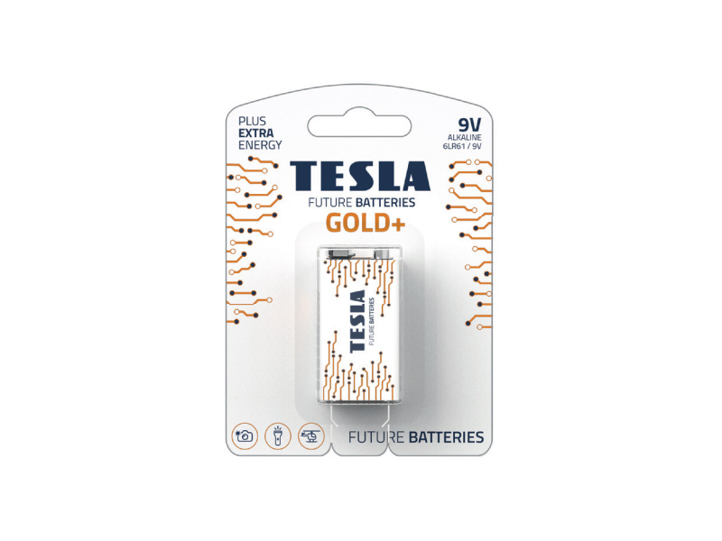= KOD:313407 PKOD:21013 =TESLA 9V GOLD+ 6LR61 Alkalická baterie 9V, balení 1ks