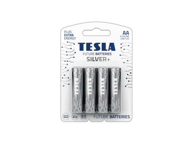 = KOD:313410 PKOD:21016 =TESLA AA SILVER+ LR06 Alkalická baterie 1,5V, balení po 4ks