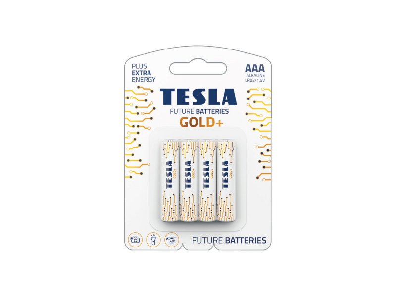 = KOD:313406 PKOD:21012 =TESLA AAA GOLD+, LR03 Alkalická baterie 1,5V, balení po 4ks
