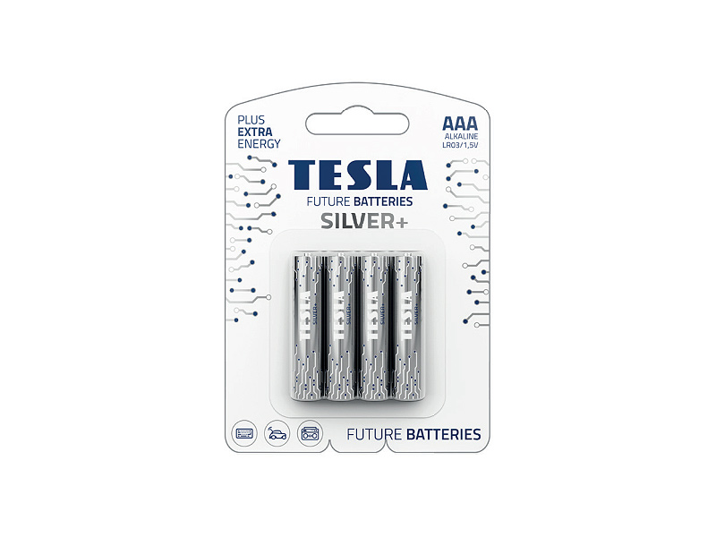 = KOD:313413 PKOD:21019 =TESLA AAA SILVER+ LR03 Alkalická baterie 1,5V, balení po 4ks