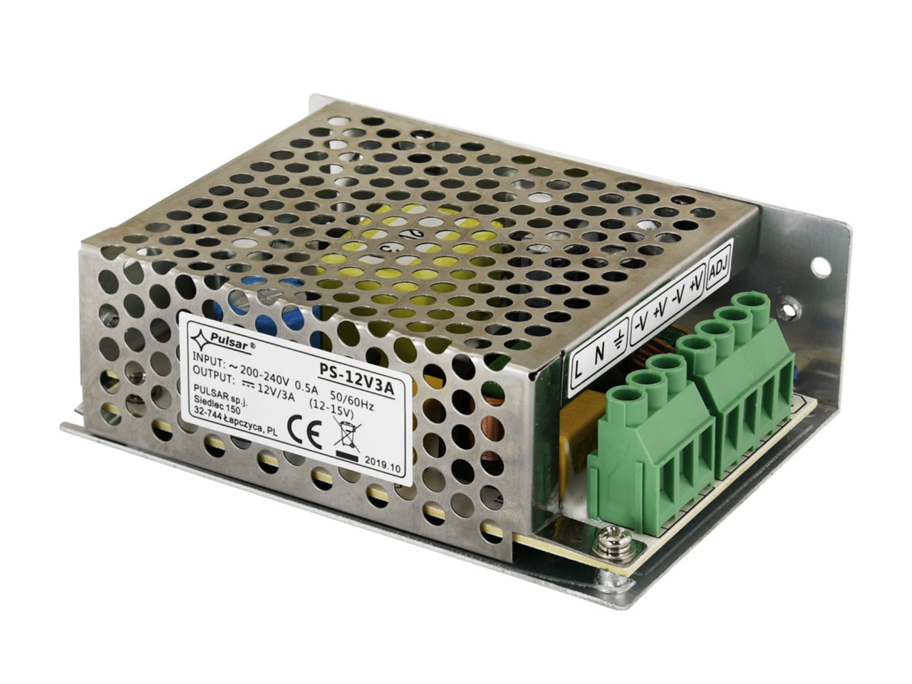 Napájecí zdroj je určen pro napájení zařízení zabezpečovacího systému vyžadující napájecí napětí 12 V DC a proudové zatížení I=3 A. Konstrukce umožňuje jednoduchou změnu výstupního napětí v rozsahu 12 V - 15 V DC pomocí potenciometru. Napájecí zdroj je chráněn proti zkratu, přetížení a přepětí.