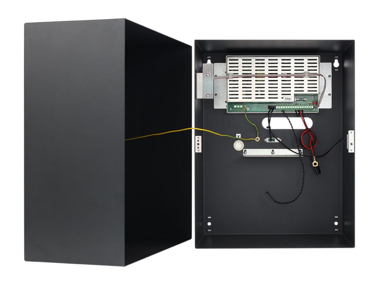 = KOD:109924 PKOD:24203 =13,8V/5,5A/40Ah/EN záložní impulzní napájecí zdroj, 3,3A/13,8VDC - pro stupeň 1, 2; 1,3A/13,8VDC - pro stupeň 3; 5,5A/13,8VDC - pro všeobecné použití, dobíjecí proud akumulátoru: 1,8A, prostor pro akumulátor: 40Ah/12V, SCP, OLP, UVP, OVP*, tamper (otevření skříně, sejmutí ze stěny), Technické výstupy: EPS - poruchu síťového napájení AC, PSU - porucha napájení, APS – porucha akumulátoru, rozměry: 314 x 408 x 190mm, LED panel, splňuje normu EN 50131
