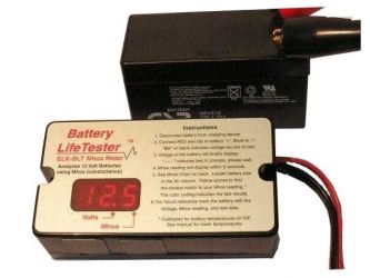 Battery Life Tester - testuje spolehlivě olověné, bezúdržbové 12V VRLA akumulátory o kapacitě 1,2 - 26 Ah. Pracuje na principu měření konduktance (obrácená hodnota vnitřního odporu). Tester měří napětí akumulátoru a obrácenou hodnotu vnitřního odporu. Test trvá několik vteřin. Vhodný pro rychlé zjištění stavu akumulátoru.