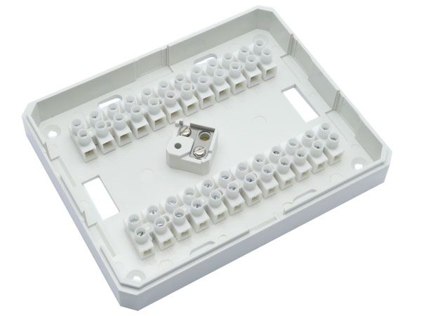 = KOD:100059 PKOD:59 =Plastová krabice, 24 průchozích svorek a tamper kontakt, povrchová montáž