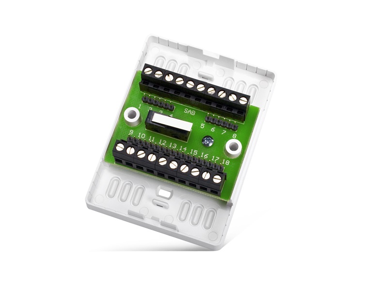 Propojovací krabice, 18 průchozích svorkovnic (2,5x2,5 mm), možnost konfigurace zapojení jumper propojkami, povrchová montáž, tamper
