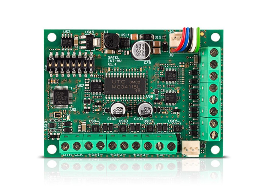Hlasový verifikační modul poplachu INT-AV umožňuje iniciovat dálkové zhodnocení situace ve střeženém objektu pomocí naslouchání situace. Kromě toho zařízení umožňuje vysílat zprávy z monitorovací stanice k informování přítomných lidí ve střeženém objektu.